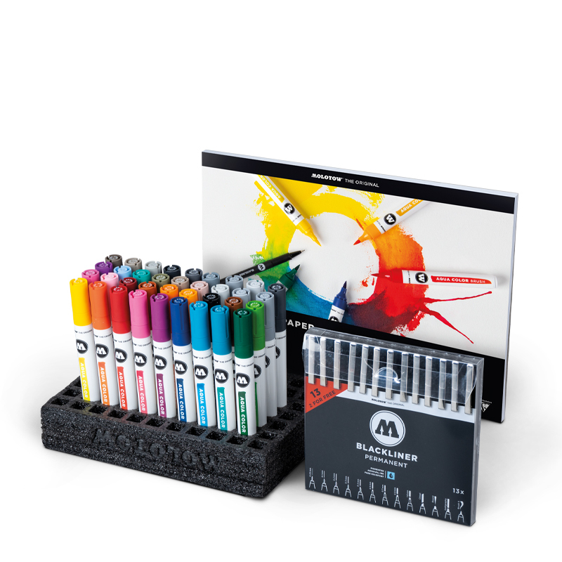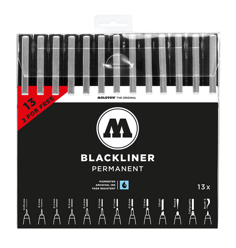 Indispensables pour la réalisation de plans, le dessin technique et les projets artistiques sur papier, les feutres calibrés Molotow Blackliner promettent une excellente tenue de l'encre dans le temps et une bonne résistance aux UV.